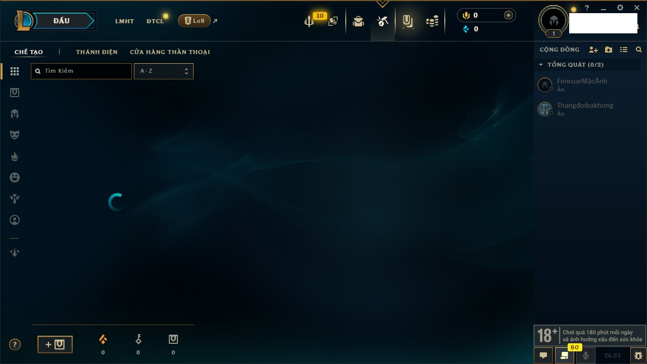 Rank Đơn: Chưa rank mùa nàoKhung: Chưa có khungTướng: 0 - Còn 0 THXTrang Phục: 0Rank ĐTCL: Chưa rank mùa nàoLinh Thú: 10