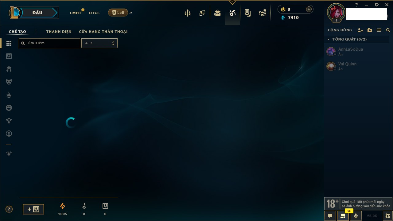 Rank Đơn: Chưa RankKhung: Chưa có khungTướng: 166 - Còn 81290 THXTrang Phục: 69Rank ĐTCL: Chưa RankLinh Thú: 53