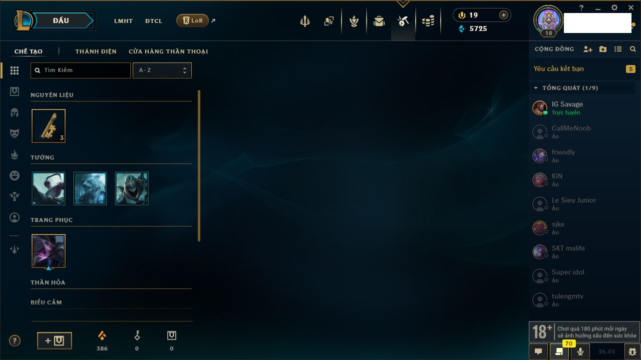 Rank Đơn: Chưa rank mùa nàoKhung: Chưa có khungTướng: 56 - Còn 1135 THXTrang Phục: 0Rank ĐTCL: Chưa RankLinh Thú: 5