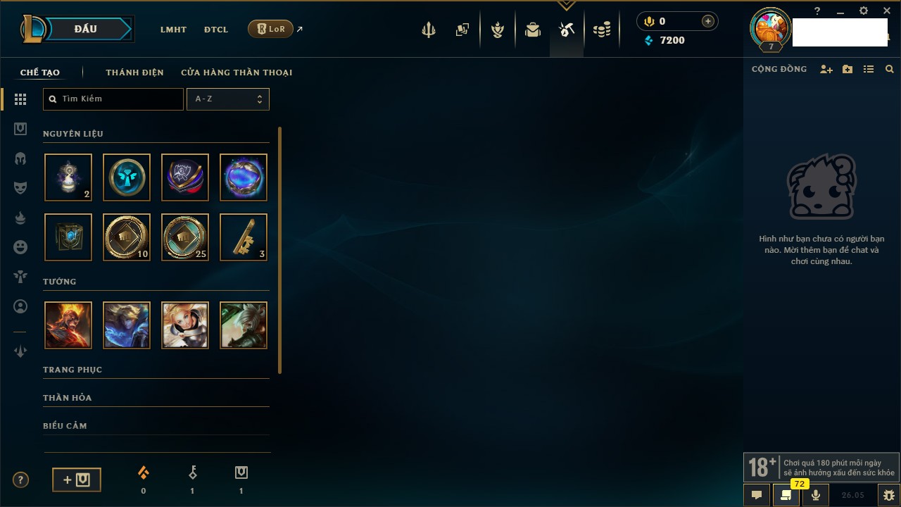 Rank Đơn: Chưa rank mùa nàoKhung: Chưa có khungTướng: 70 - Còn 7630 THXTrang Phục: 0Rank ĐTCL: Chưa RankLinh Thú: 5