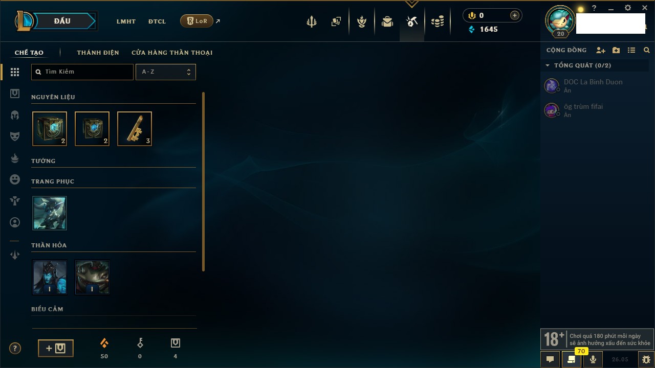 Rank Đơn: Chưa rank mùa nàoKhung: Chưa có khungTướng: 47 - Còn 2960 THXTrang Phục: 1Rank ĐTCL: Chưa RankLinh Thú: 8