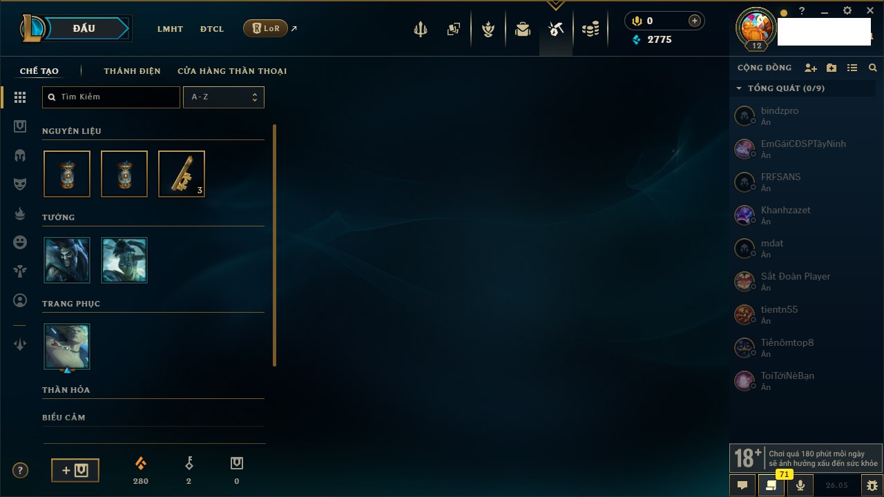 Rank Đơn: Chưa rank mùa nàoKhung: Chưa có khungTướng: 20 - Còn 8195 THXTrang Phục: 2Rank ĐTCL: Chưa RankLinh Thú: 2
