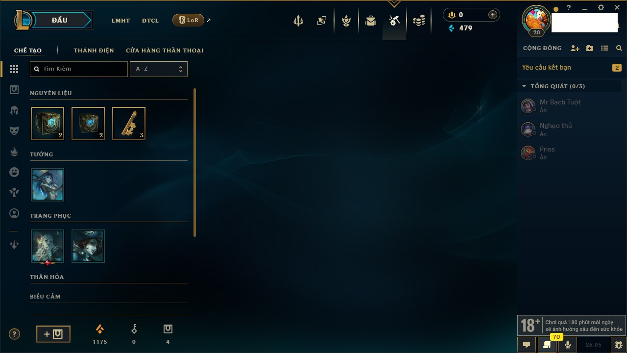 Rank Đơn: Chưa rank mùa nàoKhung: Chưa có khungTướng: 20 - Còn 4410 THXTrang Phục: 2Rank ĐTCL: Chưa RankLinh Thú: 2