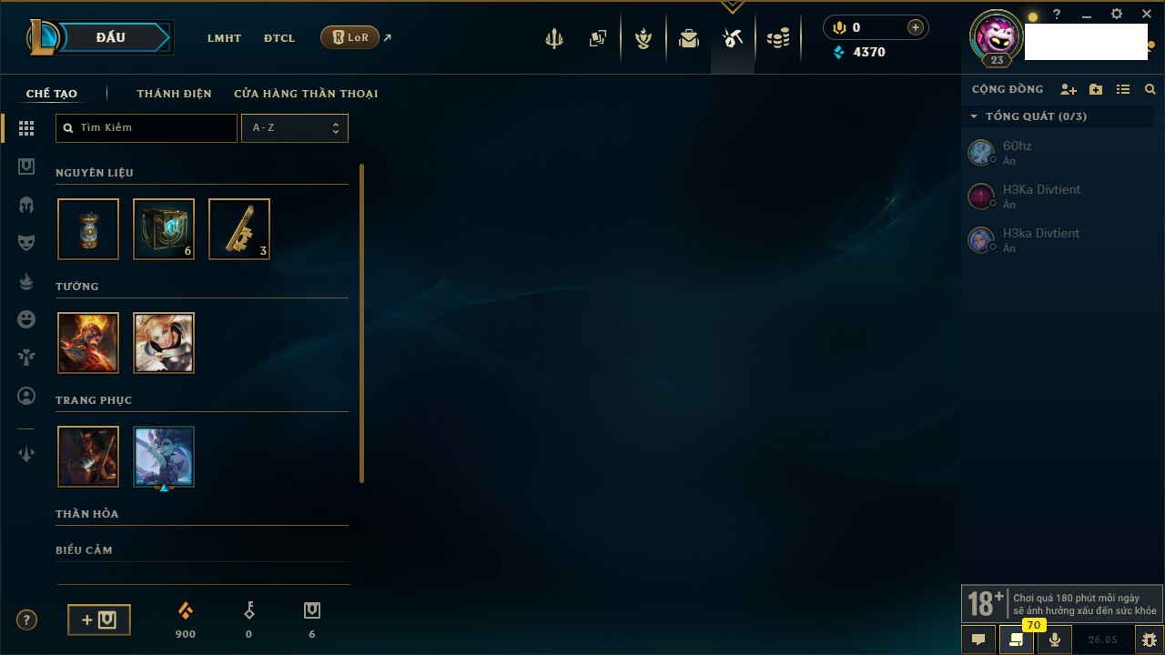 Rank Đơn: Chưa rank mùa nàoKhung: Chưa có khungTướng: 24 - Còn 9460 THXTrang Phục: 0Rank ĐTCL: Chưa RankLinh Thú: 5