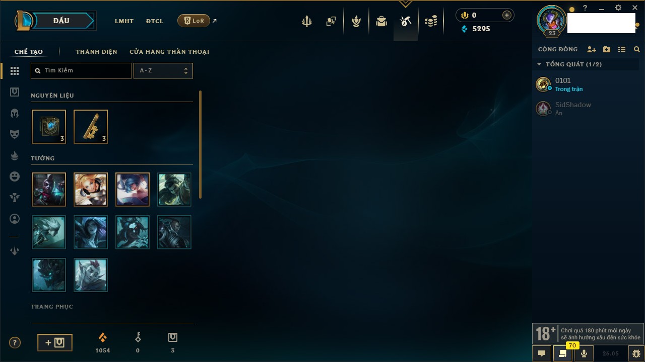 Rank Đơn: Chưa rank mùa nàoKhung: Chưa có khungTướng: 4 - Còn 6647 THXTrang Phục: 2Rank ĐTCL: Chưa RankLinh Thú: 5