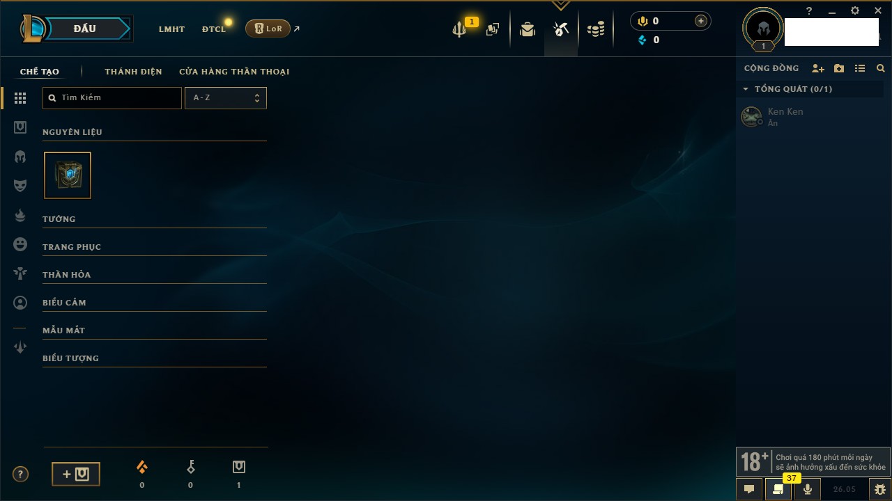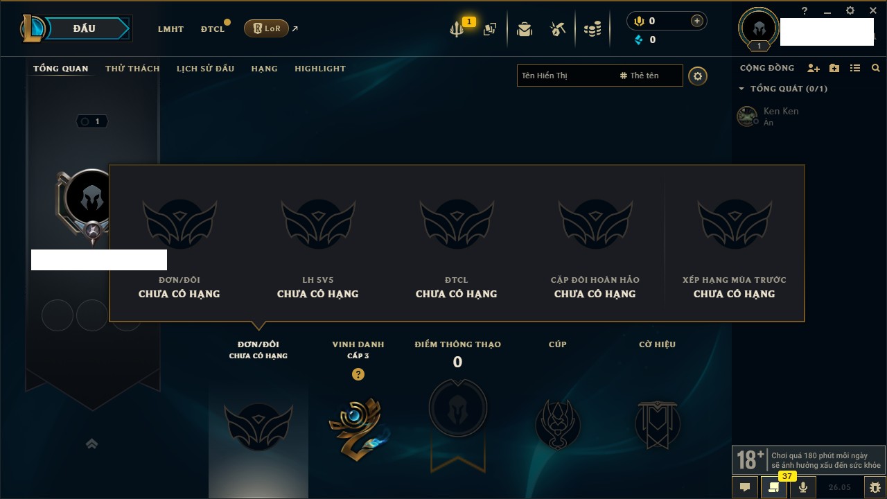 Rank Đơn: Chưa rank mùa nàoKhung: Chưa có khungTướng: 1 - Còn 0 THXTrang Phục: 0Rank ĐTCL: Chưa RankLinh Thú: 10