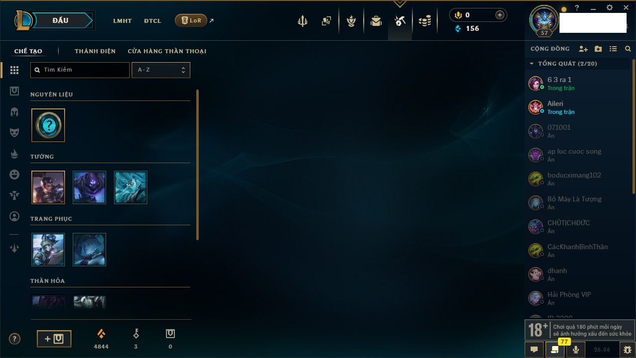 Rank Đơn: Chưa rank mùa nàoKhung: Chưa có khungTướng: 0 - Còn 5500 THXTrang Phục: 0Rank ĐTCL: Chưa rank mùa nàoLinh Thú: 8