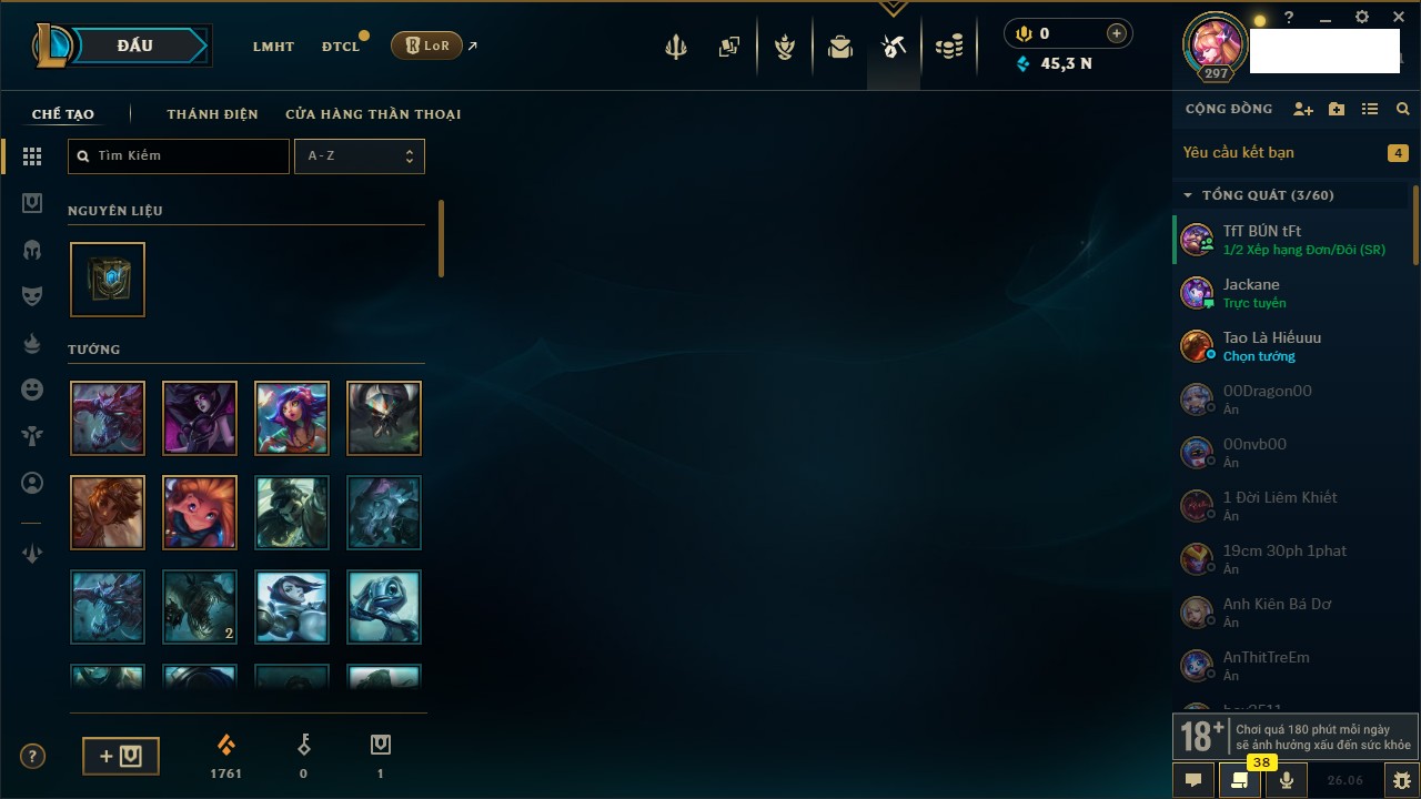 Rank Đơn: Chưa rank mùa nàoKhung: Chưa có khungTướng: 1 - Còn 17450 THXTrang Phục: 0Rank ĐTCL: Chưa rank mùa nàoLinh Thú: 32
